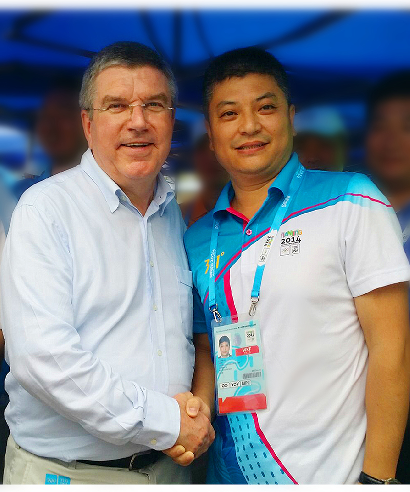 2014年8月19日,国际奥林匹克委员会主席托马斯巴赫一行参观青奥体育公园,南京延明总经理李延明陪同参观。